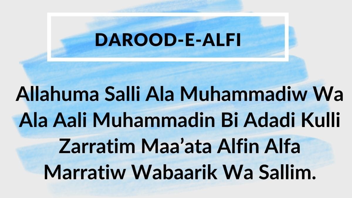 Allahuma Salli Ala Muhammadiw Wa Ala Aali Muhammadin Bi Adadi Kulli Zarratim Maa’ata Alfin Alfa Marratiw Wabaarik Wa Sallim.
