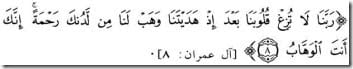 8. (They say): “Our Lord! Let not our hearts deviate (from the truth) after You have guided us, and grant us mercy from You. Truly, You are the Bestower.”