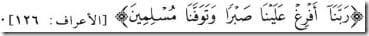 126. “Our Lord! pour out on us patience, and cause us to die as Muslims.”