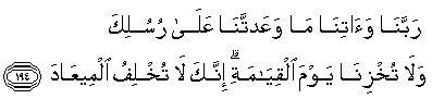 194. “Our Lord! Grant us what You promised unto us through Your Messengers and disgrace us not on the Day of Resurrection, for You never break (Your) Promise.”