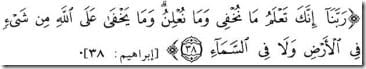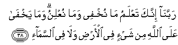 38. “O our Lord! Certainly, You know what we conceal and what we reveal. Nothing on the earth or in the heaven is hidden from Allah.