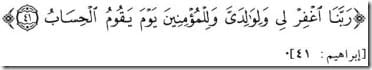 41. “Our Lord! Forgive me and my parents, and (all) the believers on the Day when the reckoning will be established.”