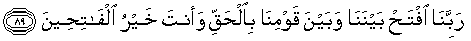 89. Our Lord! Judge between us and our people in truth, for You are the Best of those who give judgment.”