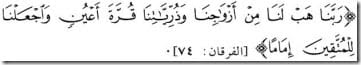 74. “Our Lord! Bestow on us from our wives and our offspring the comfort of our eyes, and make us leaders of the Muttaqun.”