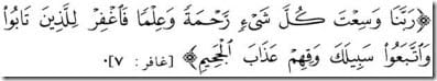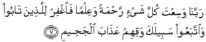 7. “Our Lord! You comprehend all things in mercy and knowledge, so forgive those who repent and follow Your Way, and save them from the torment of the blazing Fire!