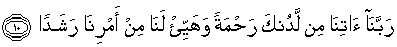 10. “Our Lord! Bestow on us mercy from Yourself, and facilitate for us our affair in the right way!”