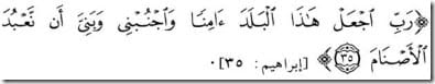 35. “O my Lord! Make this city (Makkah) one of peace and security, and keep me and my sons away from worshipping idols. ”