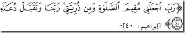 40. “O my Lord! Make me one who performs As-Salat (Iqamat-as-Salat ), and (also) from my offspring, our Lord! And accept my invocation.