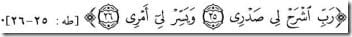 25. “O my Lord! Open for me my chest (grant me self-confidence, contentment, and boldness).