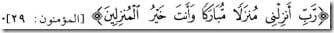 29. “My Lord! Cause me to land at a blessed landing-place, for You are the Best of those who bring to land.”