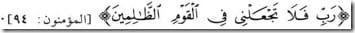 94. “My Lord! Then (save me from Your punishment), put me not amongst the people who are the Zalimun (polytheists and wrong-doers).”