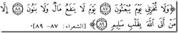 89. Except him who brings to Allah a clean heart [clean from Shirk (polytheism) and Nifaq (hypocrisy)].”