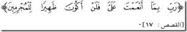 17. “My Lord! For that with which You have favoured me, I will never more be a helper of the Mujrimun (criminals, sinners, etc.)!”