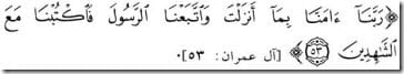 53. Our Lord! We believe in what You have sent down, and we follow the Messenger [(‘Îsa (Jesus)]; so write us down among those who bear witness (to the truth i.e. La ilaha illallah – none has the right to be worshipped but Allah).
