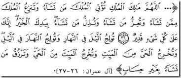 27. You make the night to enter into the day, and You make the day to enter into the night (i.e. increase and decrease in the hours of the night and the day during winter and summer), You bring the living out of the dead, and You bring the dead out of the living. And You give wealth and sustenance to whom You will, without limit (measure or account).