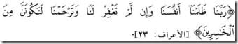 23. They said: “Our Lord! We have wronged ourselves. If You forgive us not, and bestow not upon us Your Mercy, we shall certainly be of the losers.”