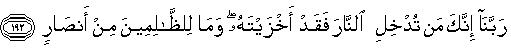 192. “Our Lord! Verily, whom You admit to the Fire, indeed, You have disgraced him; and never will the Zalimun (polytheists and wrong-doers) find any helpers.
