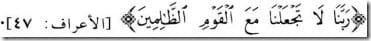 47. They will say: “Our Lord! Place us not with the people who are Zalimun (polytheists and wrong-doers).”