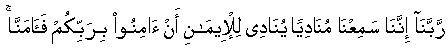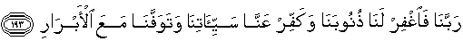 193. “Our Lord! Verily, we have heard the call of one (Muhammad (S)) calling to Faith: ‘Believe in your Lord,’ and we have believed. Our Lord! Forgive us our sins and expiate from us our evil deeds, and make us die (in the state of righteousness) along with Al-Abrar (the pious believers of Islamic Monotheism).