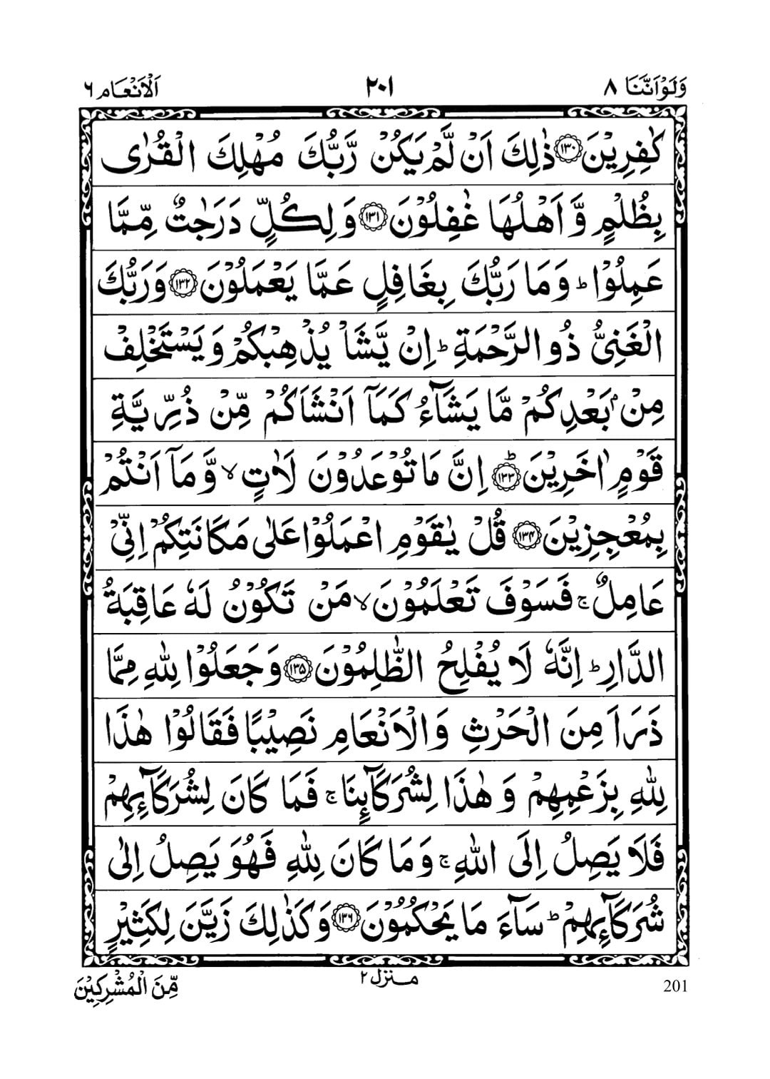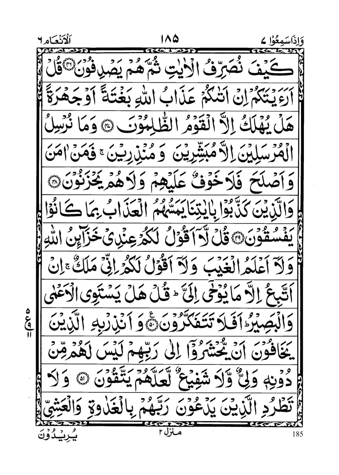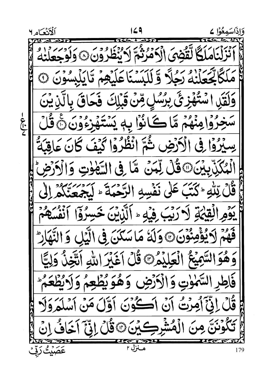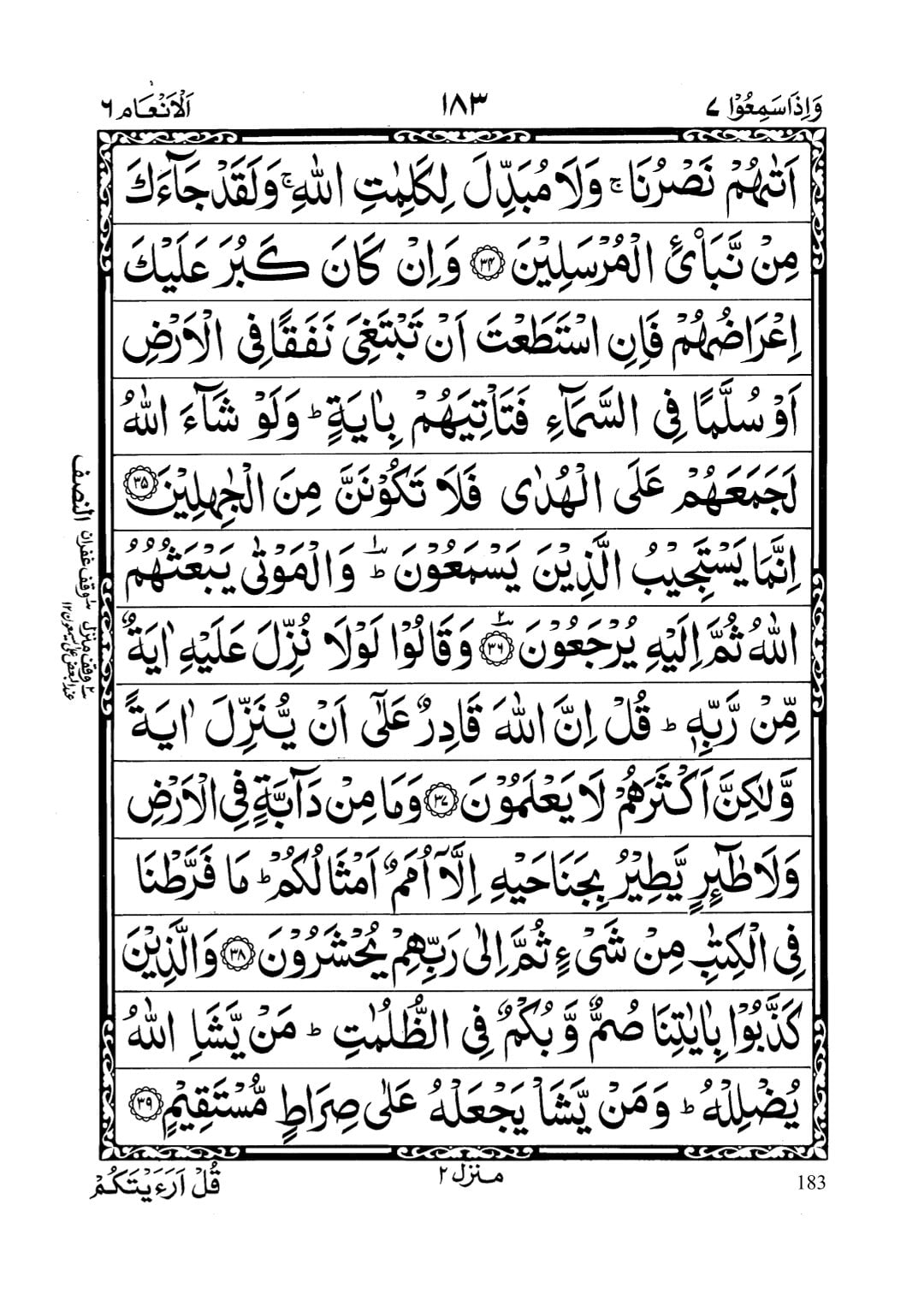 - Qul halumma shuhadaaa’akumul lazeena yash hadoona annal laaha harrama haazaa fa in shahidoo falaa tashhad ma’ahum; wa laa tattabi’ ahwaaa’al lazeena kazzaboo bi Aayaatinaa wallazeena laa yu’minoona bil Aakhirati wa hum bi Rabbihim ya’diloon (section 18)