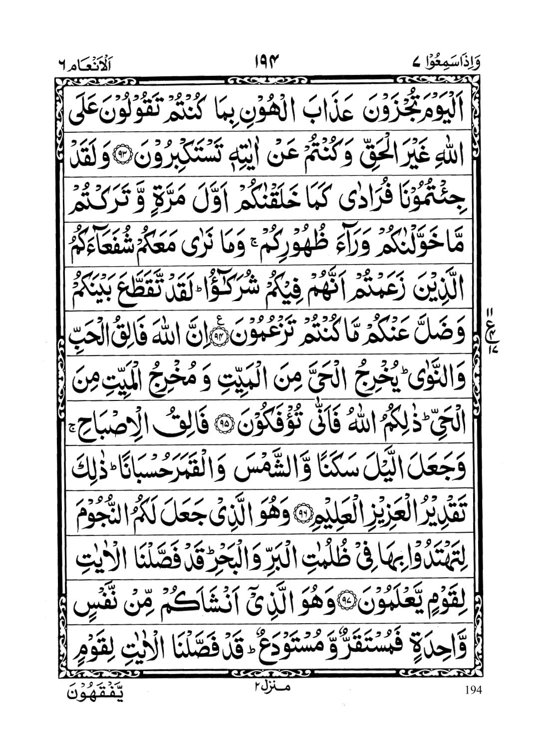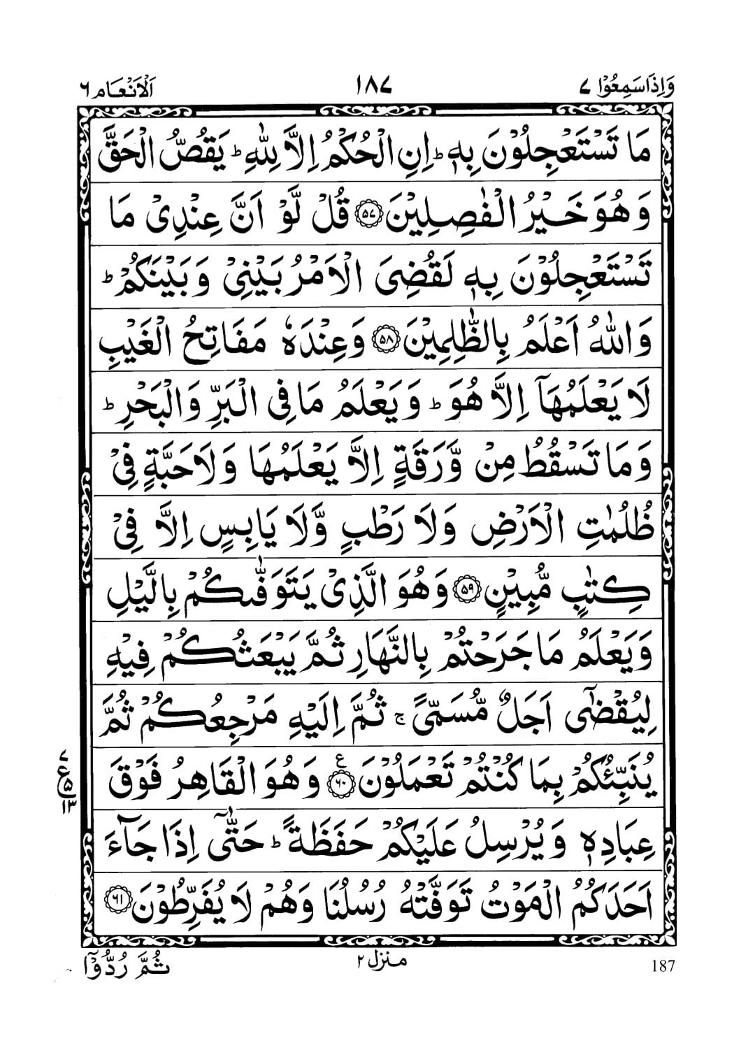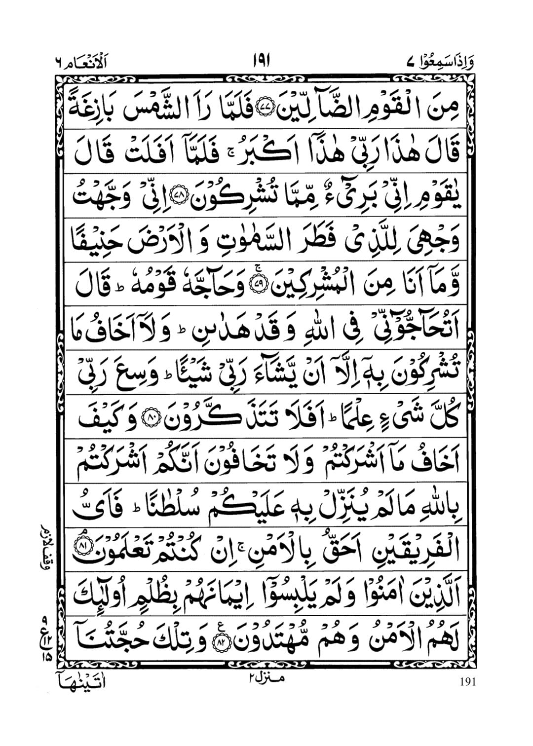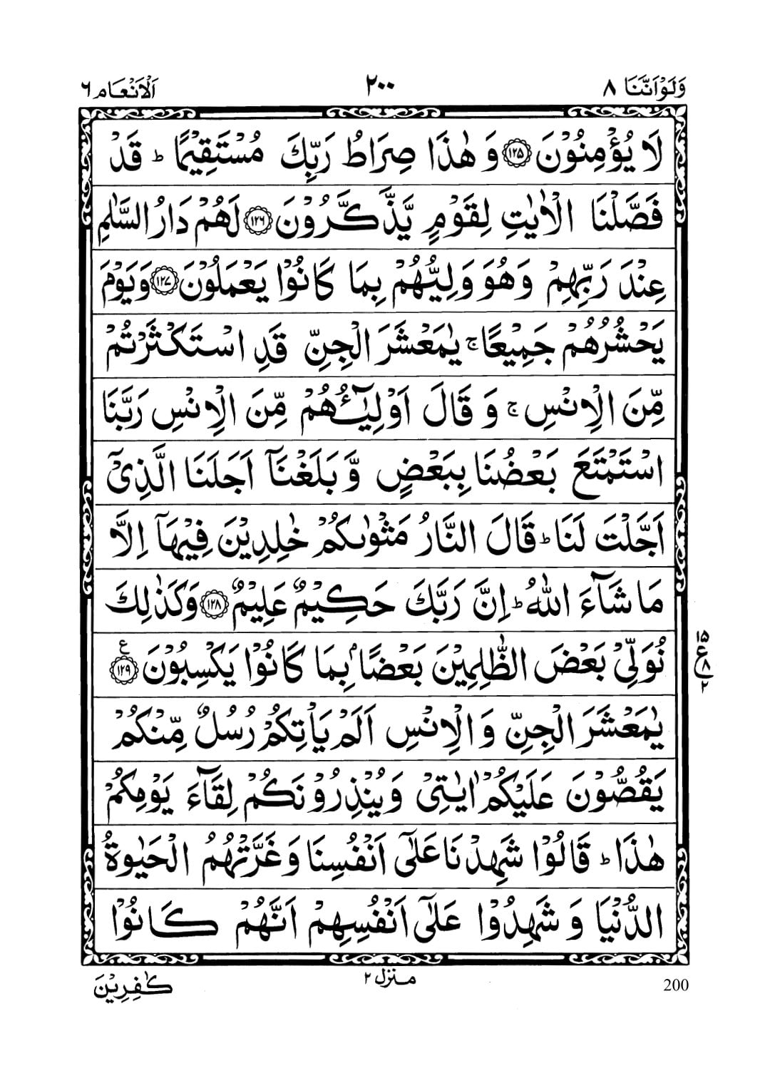 - Qul halumma shuhadaaa’akumul lazeena yash hadoona annal laaha harrama haazaa fa in shahidoo falaa tashhad ma’ahum; wa laa tattabi’ ahwaaa’al lazeena kazzaboo bi Aayaatinaa wallazeena laa yu’minoona bil Aakhirati wa hum bi Rabbihim ya’diloon (section 18)