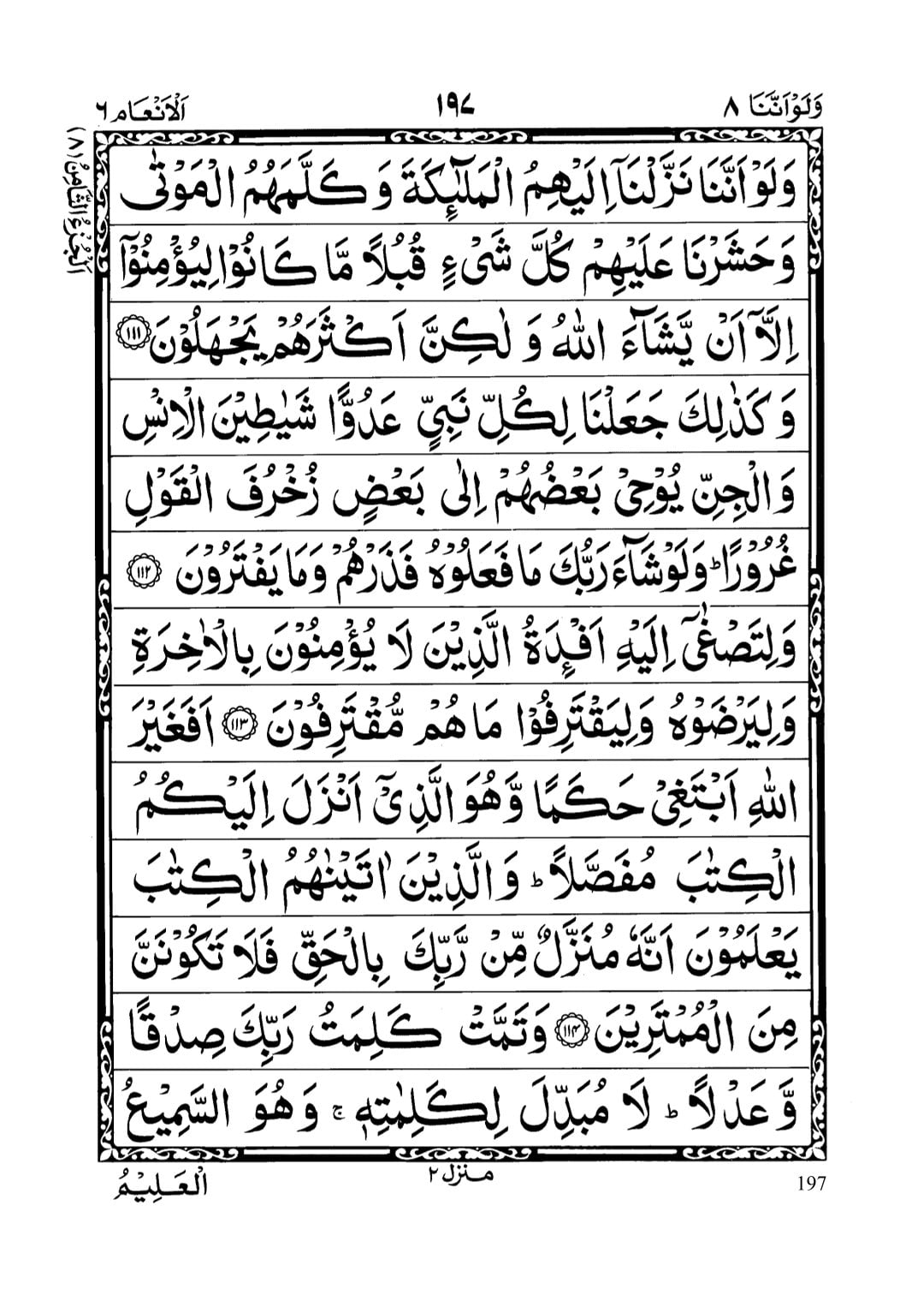 - Wa law annanaa nazzal naaa ilaihimul malaaa’ikata wa kallamahumul mawtaa wa hasharnaa ‘alaihim kulla shai’in qubulam maa kaanoo liyu’minooo illaaa ai yashaaa’al laahu wa laakinna aksarahum yajhaloon