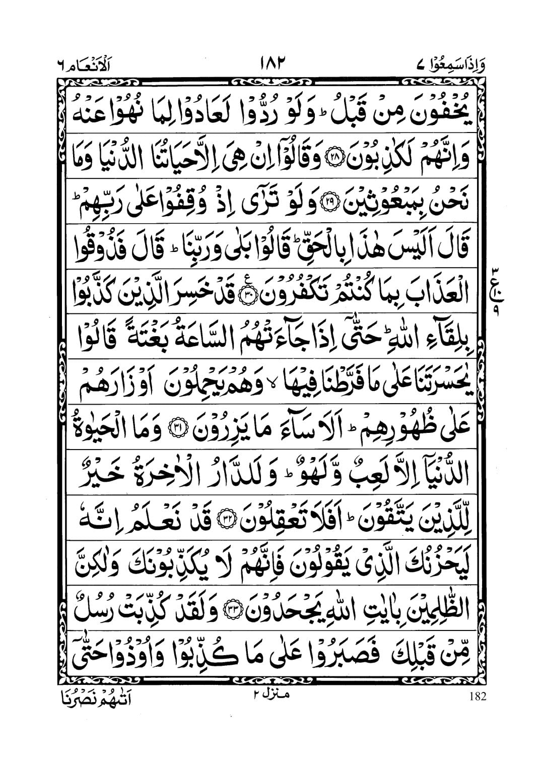 - Wa law taraa iz wuqifoo ‘alaa Rabbihim; qaala alaisa haazaa bilhaqq; qaaloo balaa wa Rabbinaa; qaala fazooqul ‘azaaba bimaa kuntum takfuroon (section 3)