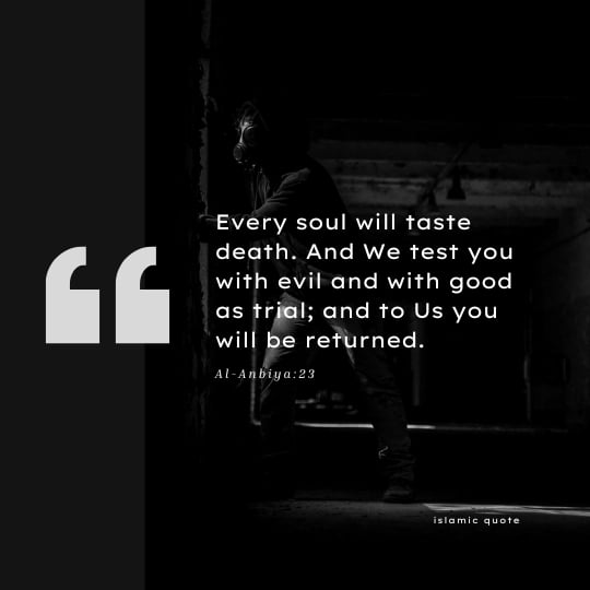 - Kullu nafsin zaaa’iqatul mawt; wa nablookum bi sharri walkhairi fitnatanw wa ilainaa turja’oon