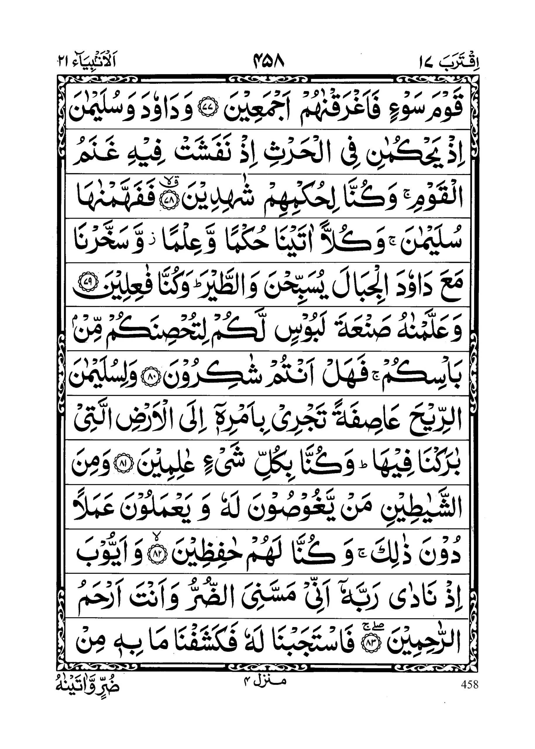 - Wa Daawooda wa Sulaimaana iz yahkumaani fil harsi iz nafashat feehi ghanamul qawmi wa kunnaa lihukmihim shaahideen