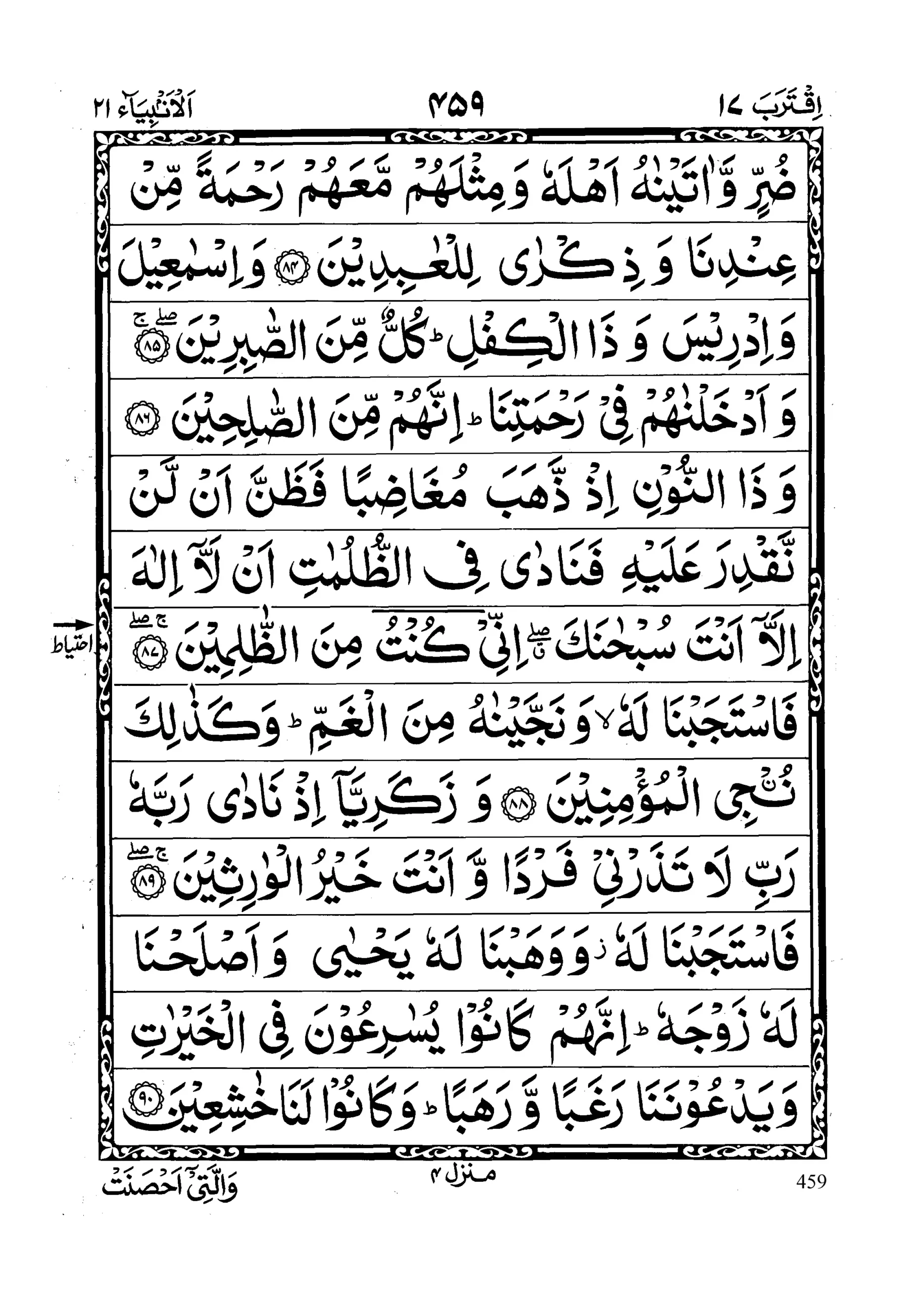 - Wa adkhalnaahu fee rahmatinaa innahoo minas saaliheen (section 5)