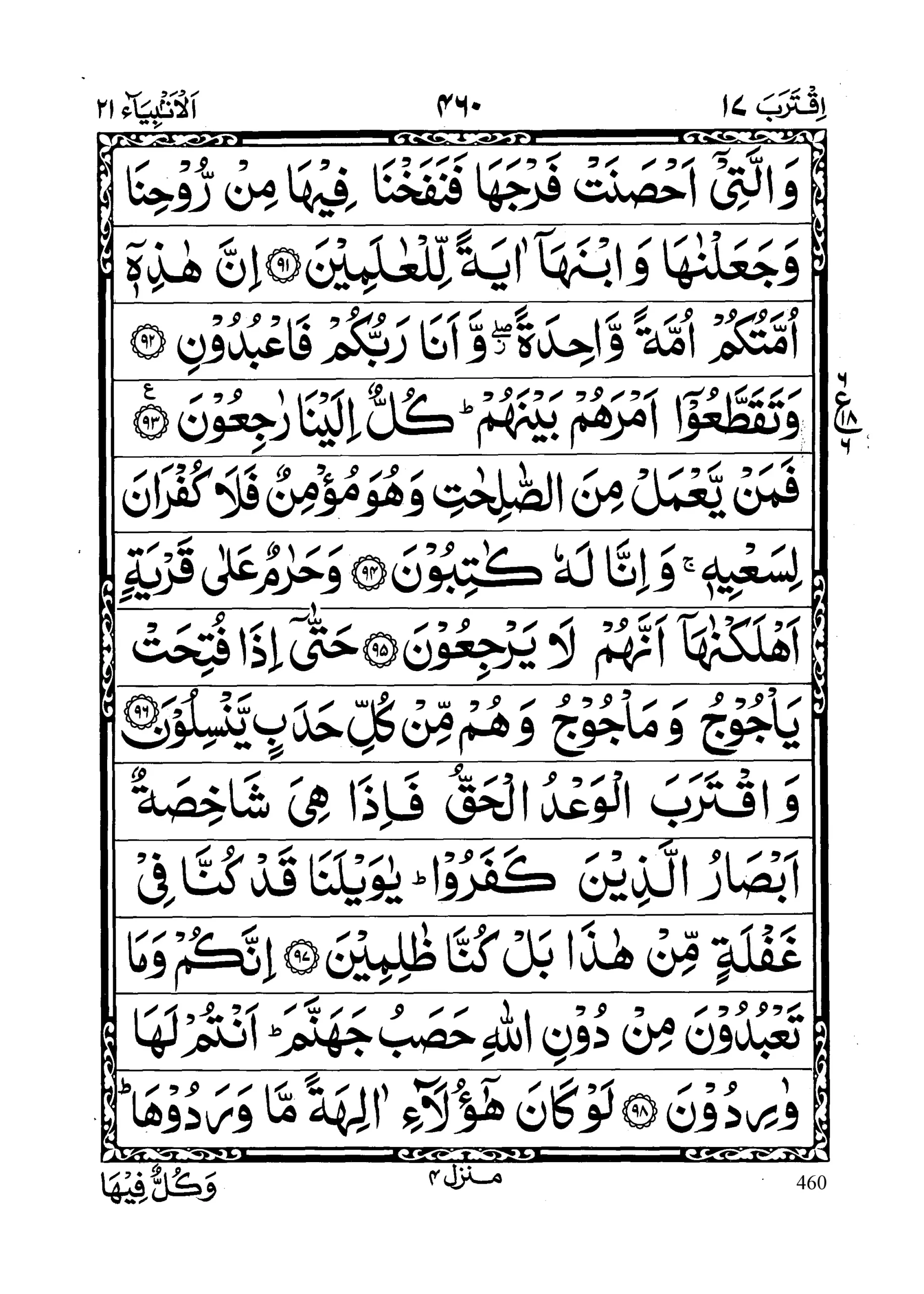 91. Wallateee ahsanat farjahaa fanafakhnaa feehaa min roohinaa wa ja’alnaahaa wabnahaaa Aayatan lil’aalameen