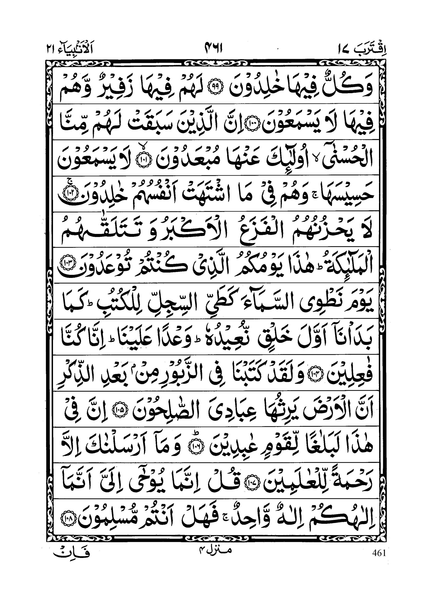 - Waqtarabal wa’dul haqqu fa-izaa hiya shaakhisatun absaarul lazeena kafaroo yaawailanaa qad kunna fee ghaflatin min haaza bal kunnaa zaalimeen