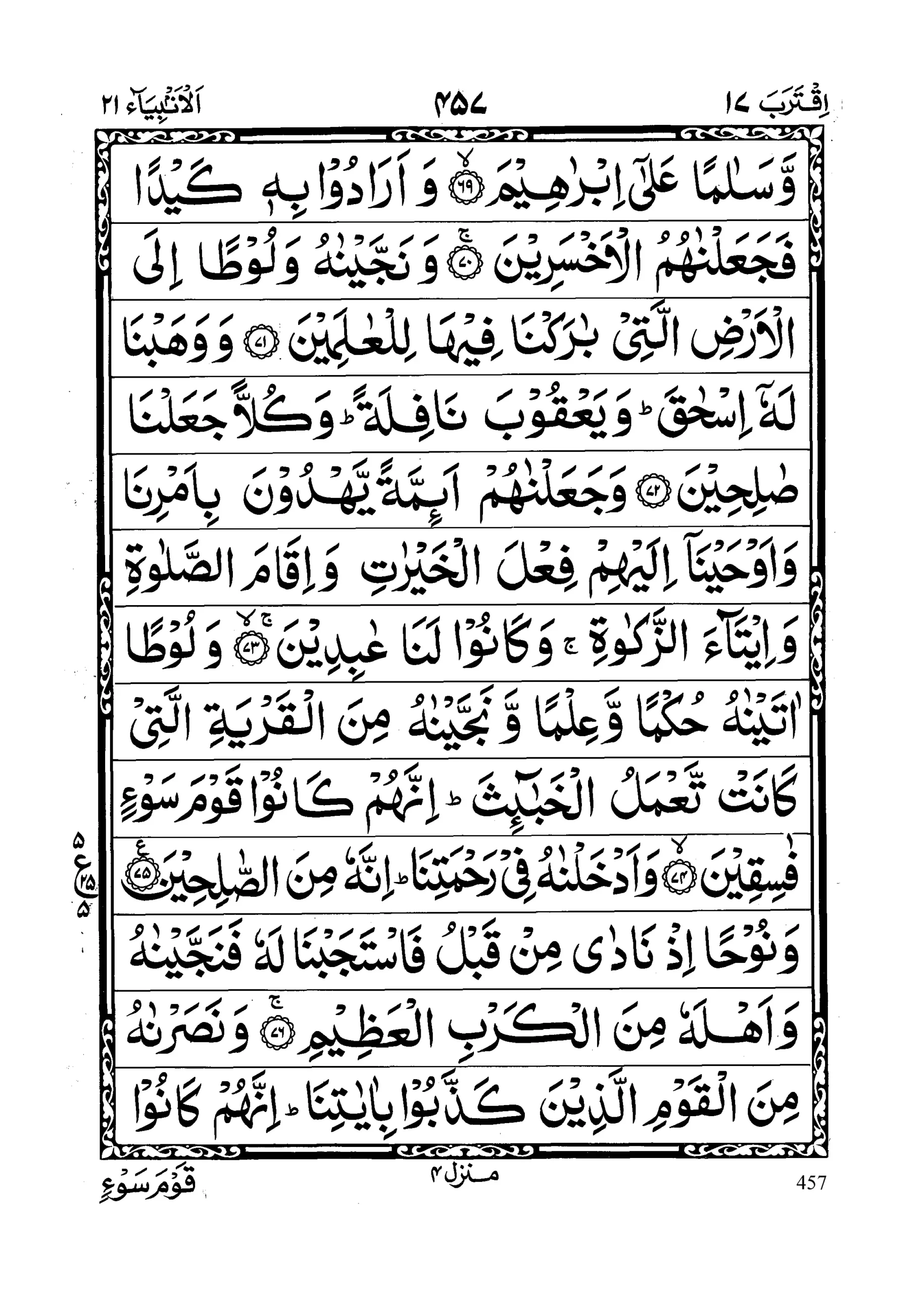 - Wa Lootan aatainaahu hukmanw wa ‘ilmanw wa najjainaahu minal qaryatil latee kaanat ta’malul khabaaa’is; innahum kaanoo qawma saw’in faasiqeen