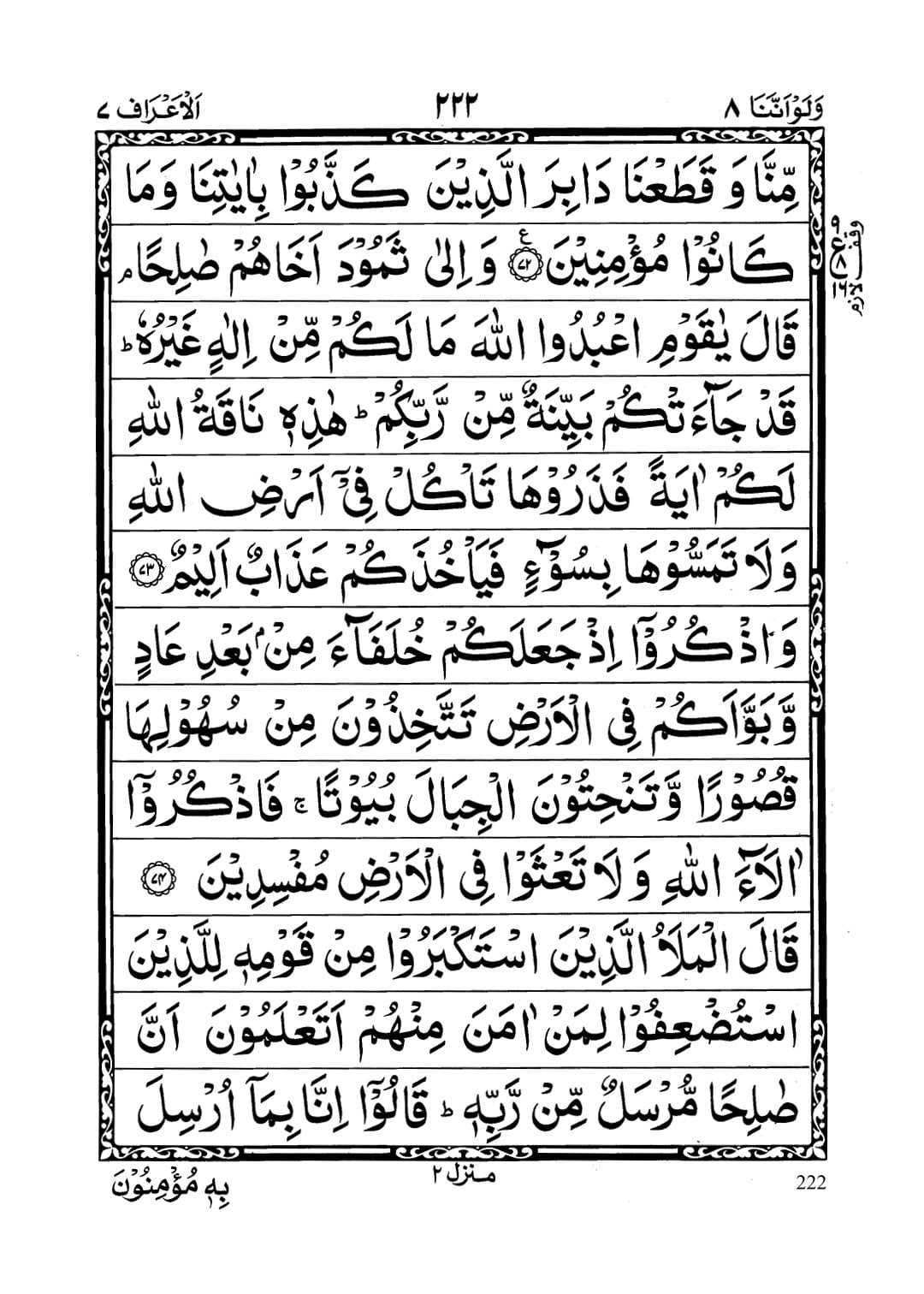 - Wa ilaa Samooda akhaahum Saalihaa; qaala yaa qawmi’ budul laaha maa lakum min ilaahin ghairuhoo qad jaaa’atkum baiyinatum mir Rabbikum haazihee naaqatul laahi lakum Aayatan fazaroohaa ta’kul feee ardil laahi wa laa tamassoohaa bisooo’in fa ya’khuzakum ‘azaabun aleem
