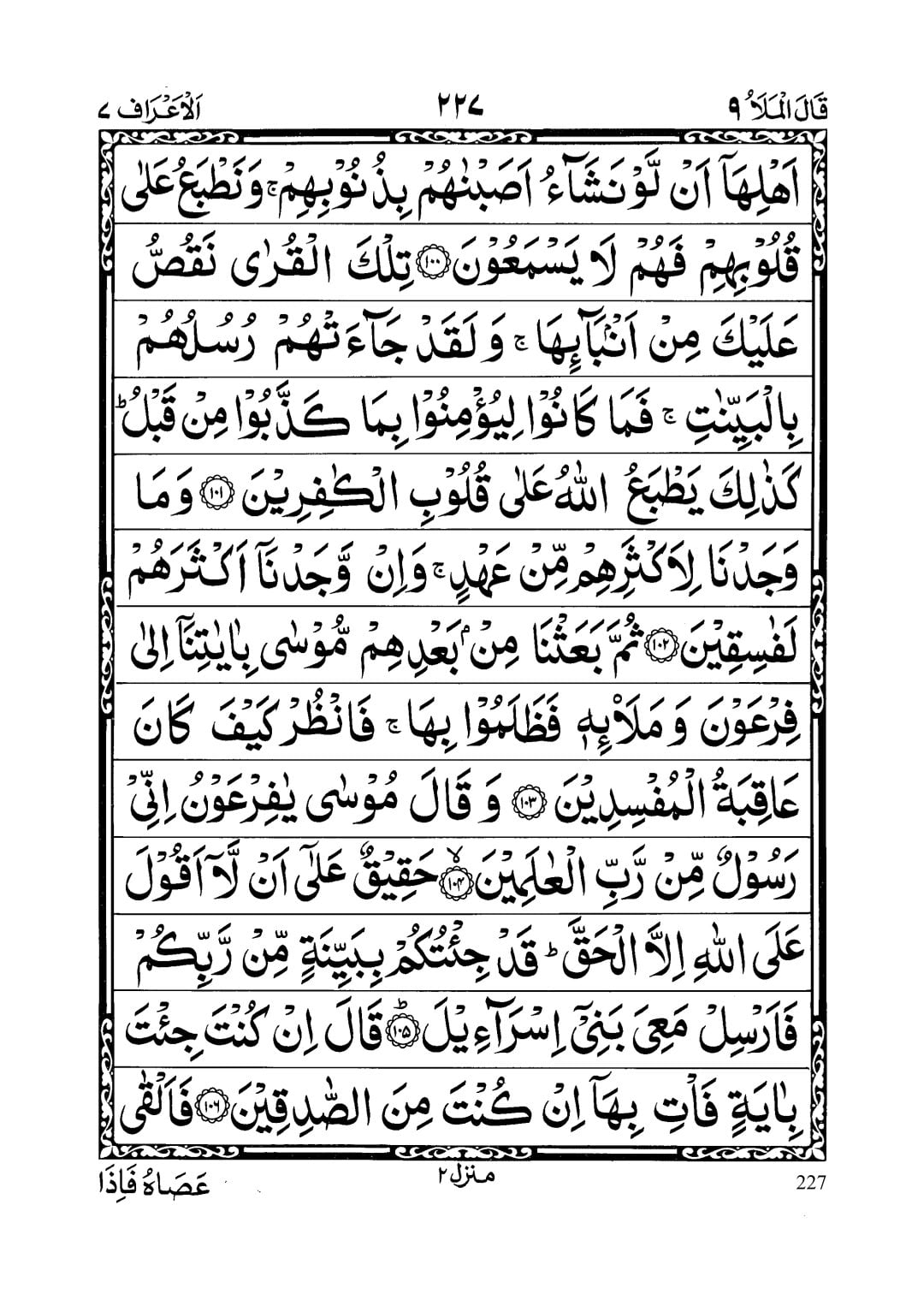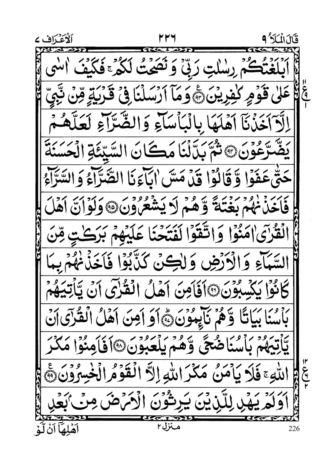 - Walbaladut taiyibu yakhruju nabaatuhoo bi-izni Rabbihee wallazee khabusa laa yakhruju illaa nakidaa; kazaalika nusarriful Aayaati liqawminy yashkuroon (section 7)