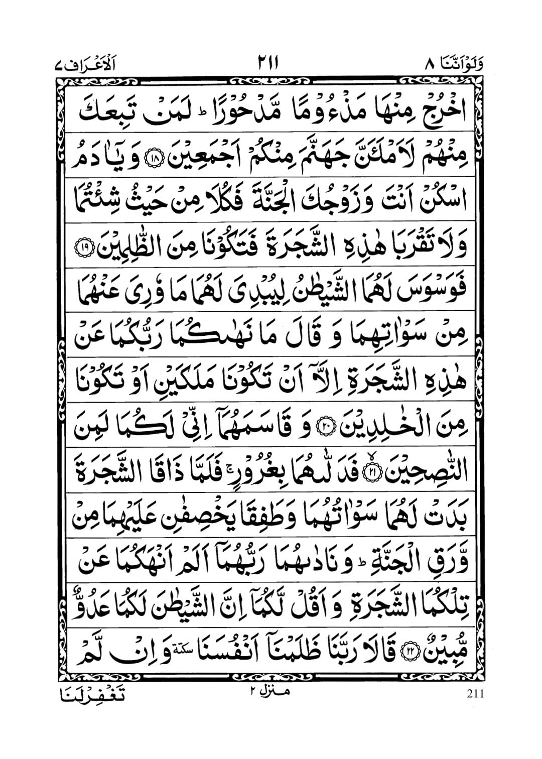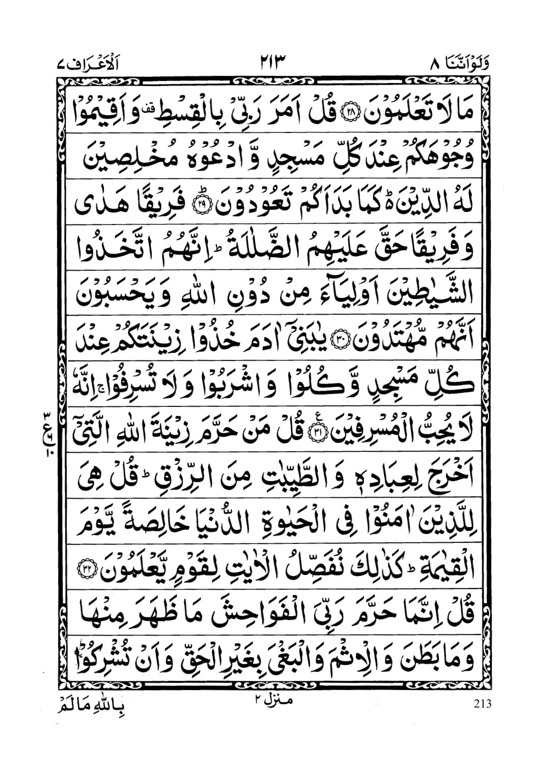 - Yaa Banneee Adama khuzoo zeenatakum ‘inda kulli masjidinw wa kuloo washraboo wa laa tusrifoo; innahoo laa yuhibbul musrifeen (section 3)