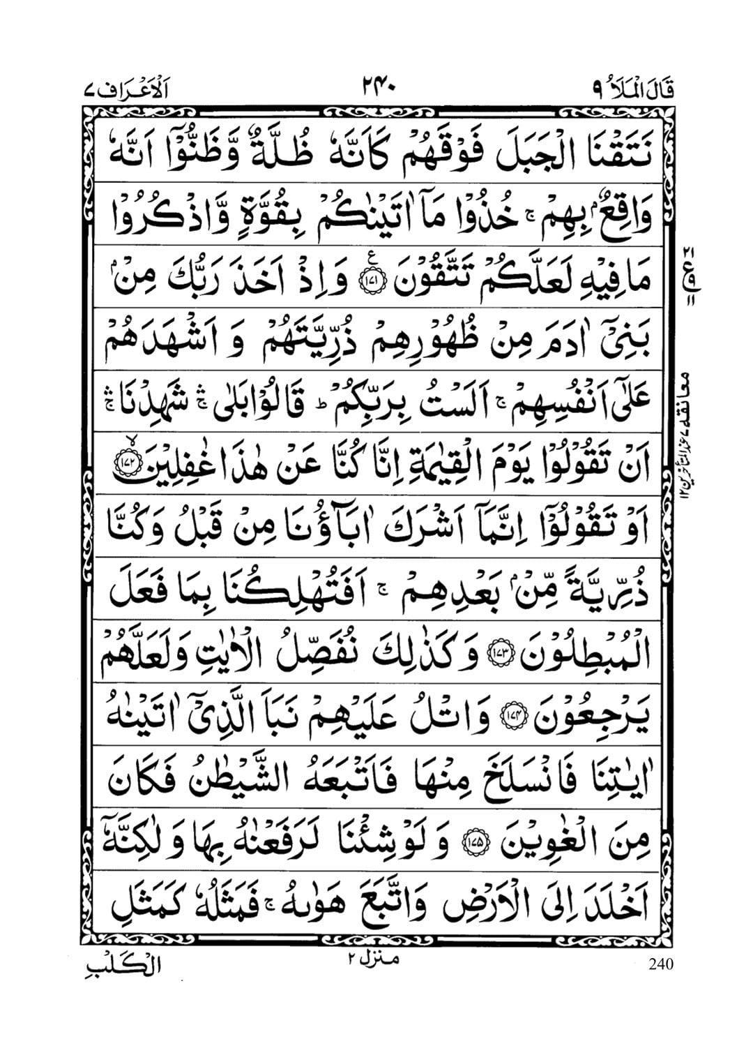 - Wa iz nataqnal jabala fawqahum ka annahoo zullatunw wa zannooo annahoo waaqi’un bihim khuzoo maaa aatainaakum biquwwatinw wazkuroo maa feehi la’allakum tattaqoon (section 21)