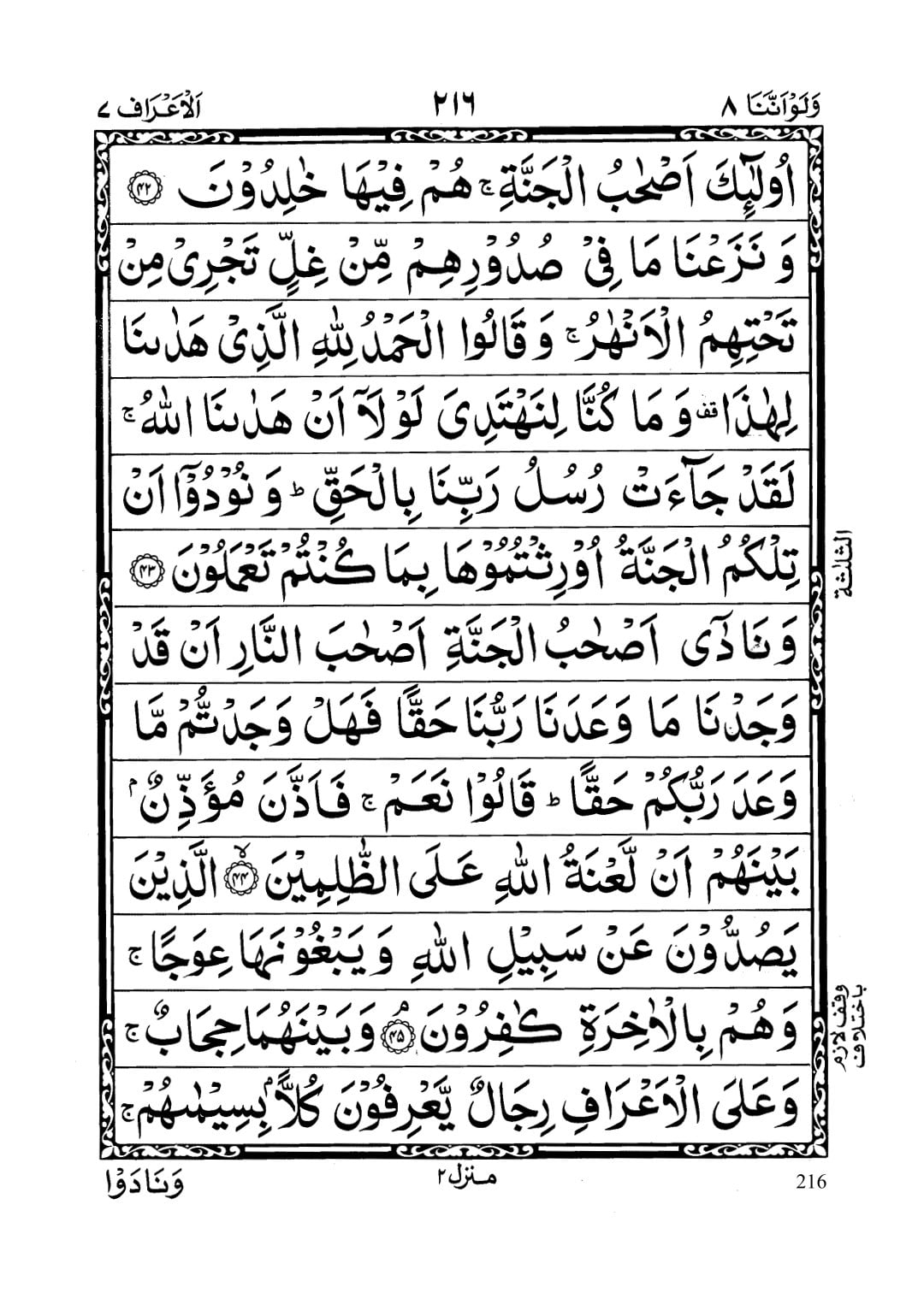 - Wa naadaa Ashaabul jannati ashaaban Naari an qad wajadnaa maa wa’adannaa Rabbunaa haqqan fahal wajattum maa wa’ada Rabbukum haqqan qaaloo na’am; fa azzana mu’azzinum bainahum al la’natul laahi ‘alaz zaalimeen