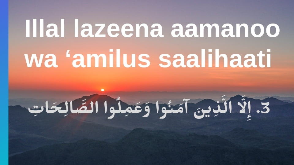 3. إِلَّا الَّذِينَ آمَنُوا وَعَمِلُوا الصَّالِحَاتِ وَتَوَاصَوْا بِالْحَقِّ وَتَوَاصَوْا بِالصَّبْرِ