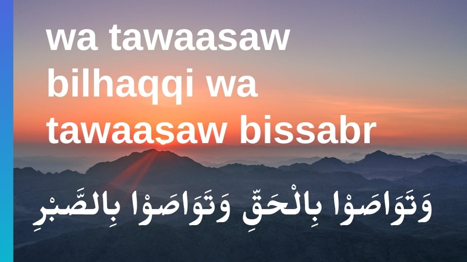 - Illal lazeena aamanoo wa ‘amilus saalihaati wa tawaasaw bilhaqqi wa tawaasaw bissabr