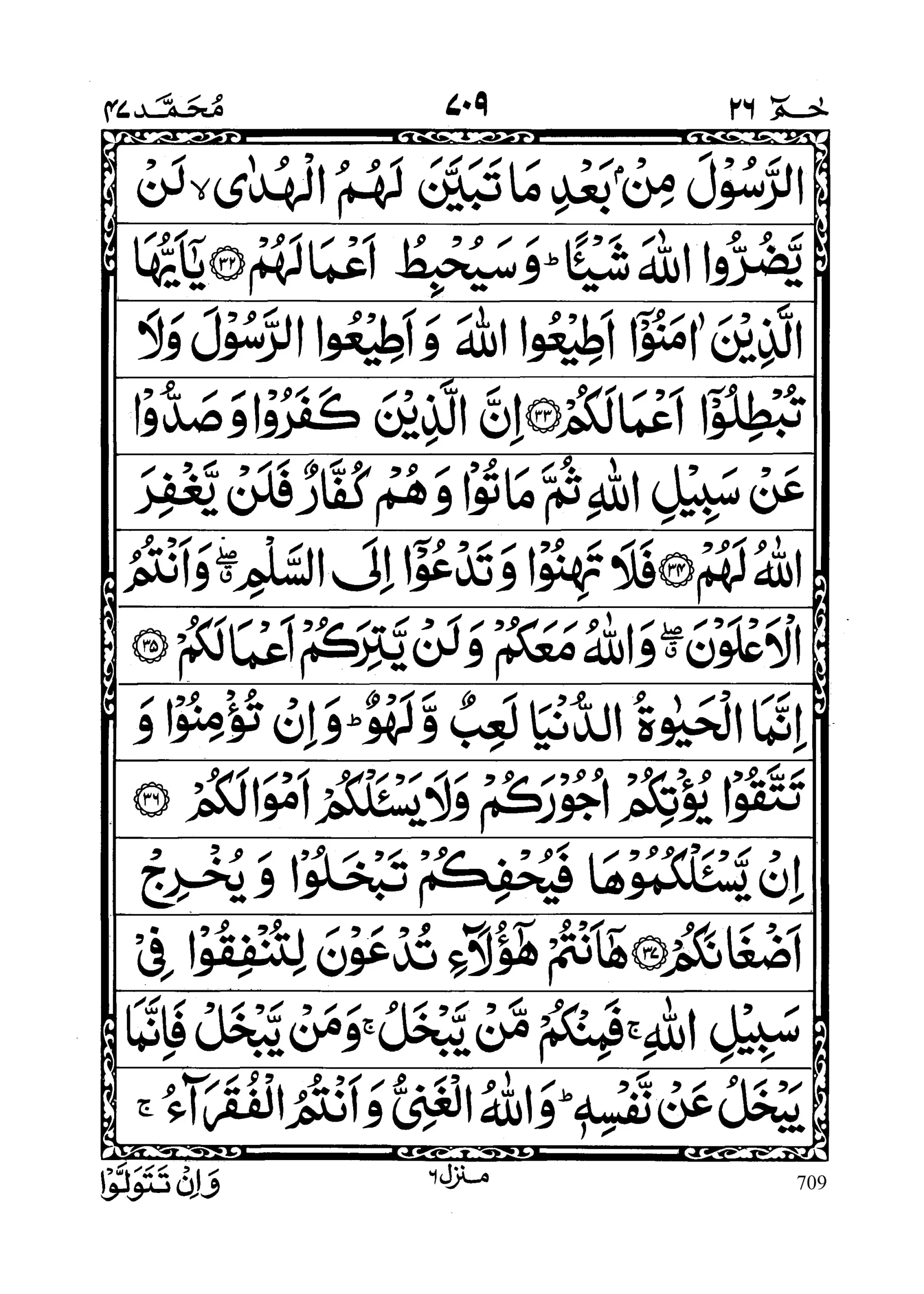 - Haaa antum haaa’ulaaa’i tud’awna litunfiqoo fee sabeelillaahi faminkum many yabkhalu wa many yabkhal fa innamaa yabkhalu ‘an nafsih; wallaahu Ghaniyyu wa antumul fuqaraaa’; wa in tatawallaw yastabdil qawman ghairakum summa laa yakoonooo amsaalakum (section 4)