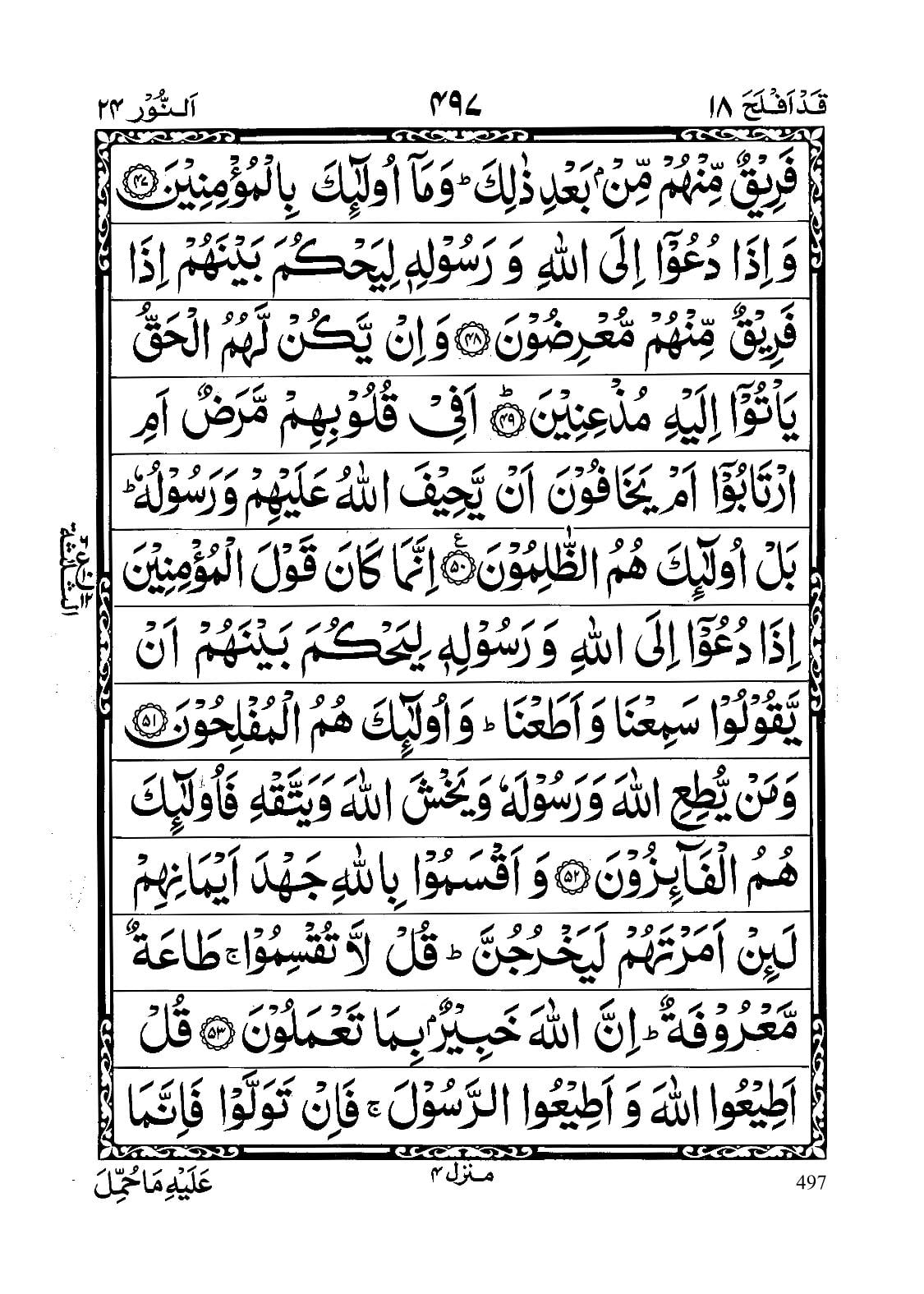 - Wa izaa du’ooo ilal laahi wa Rasoolihee li yahkuma bainahum izaa fareequm minhum mu’ridoon