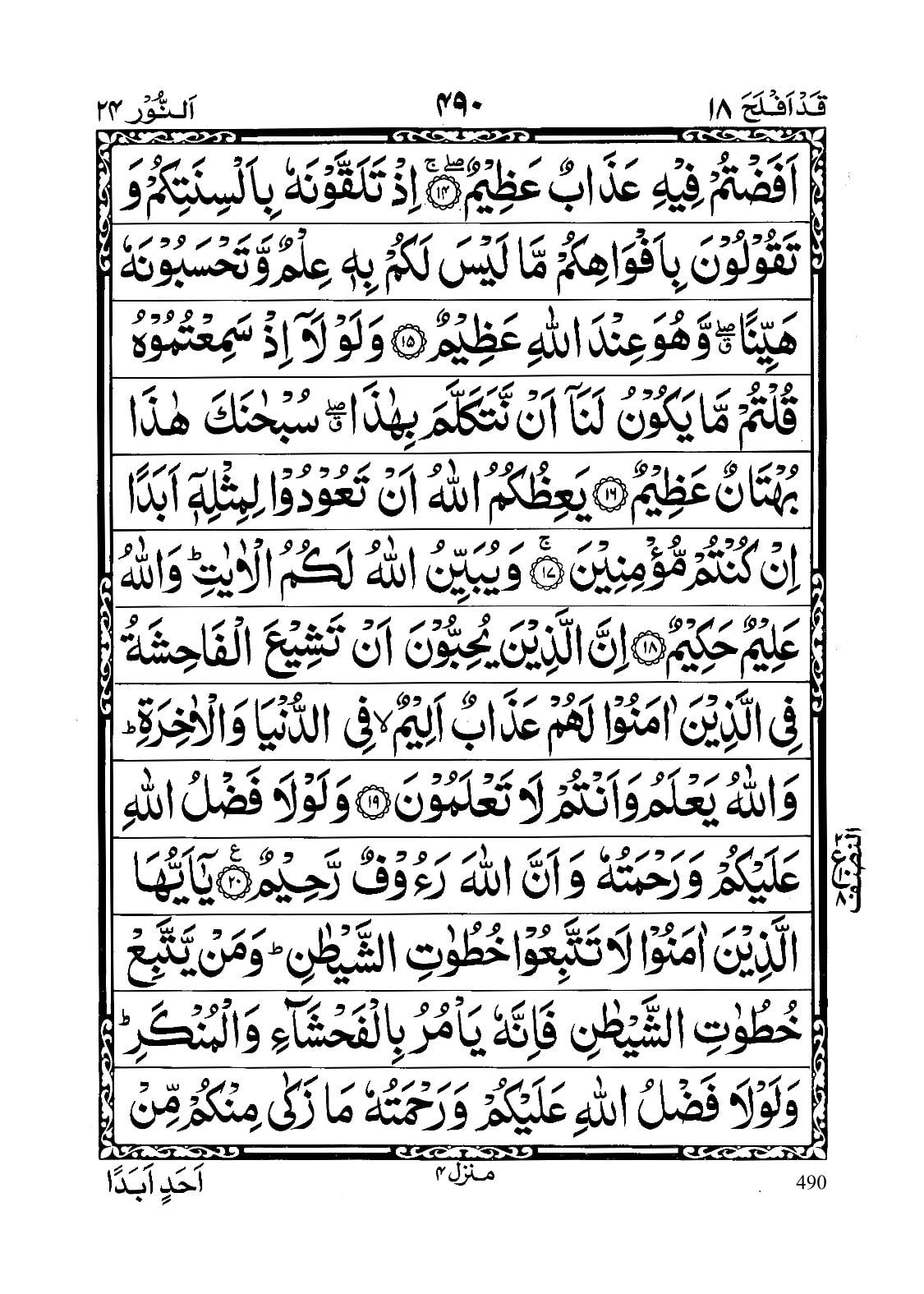 - Iz talaqqawnahoo bi alsinatikum wa taqooloona bi afwaahikum maa laisa lakum bihee ‘ilmunw wa tahsaboo nahoo haiyinanw wa huwa ‘indal laahi ‘azeem