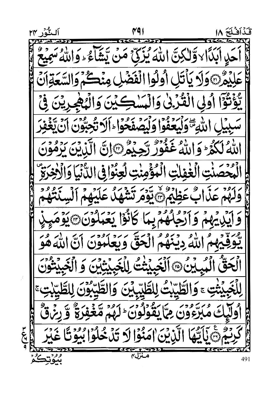 - Wa laa yaatali ulul fadli minkum wassa’ati ai yu’tooo ulil qurbaa walmasaakeena walmuhaajireena fee sabeelillaahi walya’foo walyasfahoo; alaa tuhibboona ai yaghfiral laahu lakum; wal laahu Ghafoorur Raheem