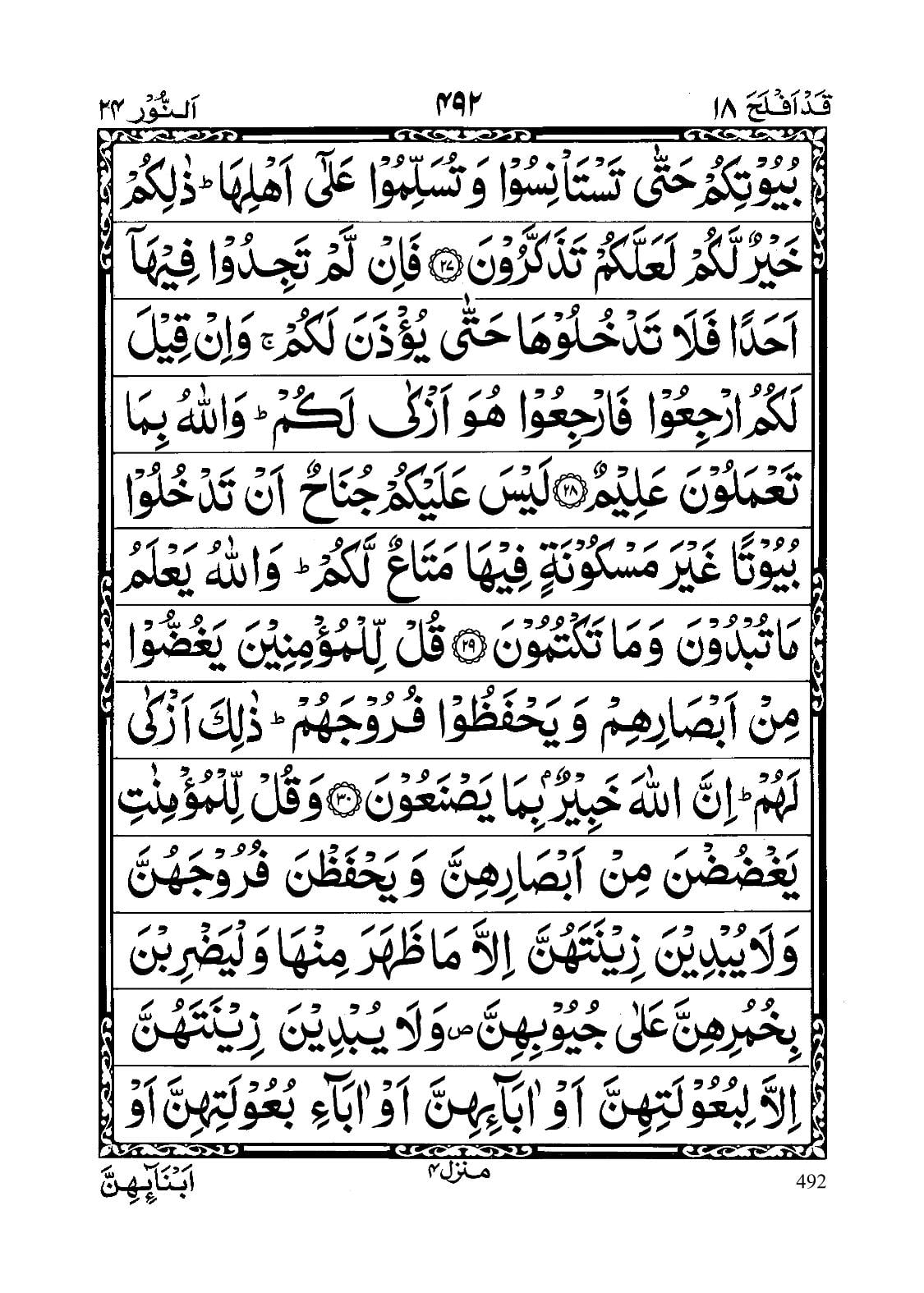 - Yaaa aiyuhal lazeena aamanoo laa tadkhuloo buyootan ghaira buyootikum hatta tastaanisoo wa tusallimoo ‘alaa ahlihaa; zaalikum khairul lakum la’allakum tazakkaroon