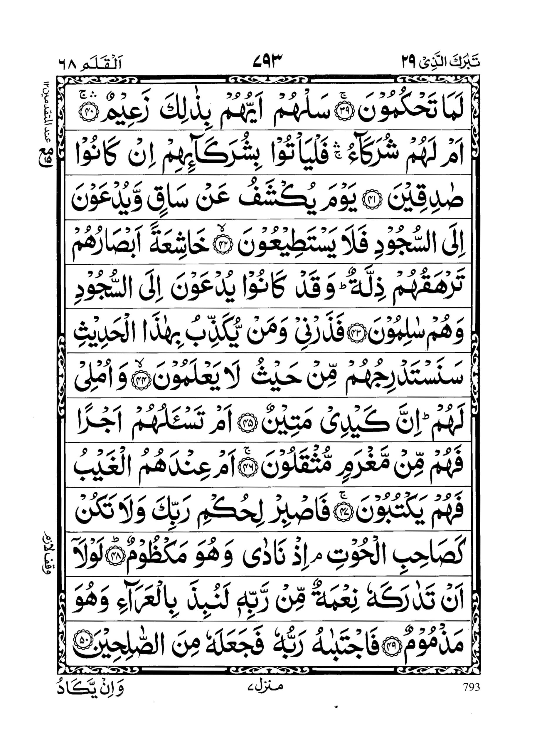 - Yawma yukshafu ‘an saaqinw wa yud’awna ilas sujoodi falaa yastatee’oon