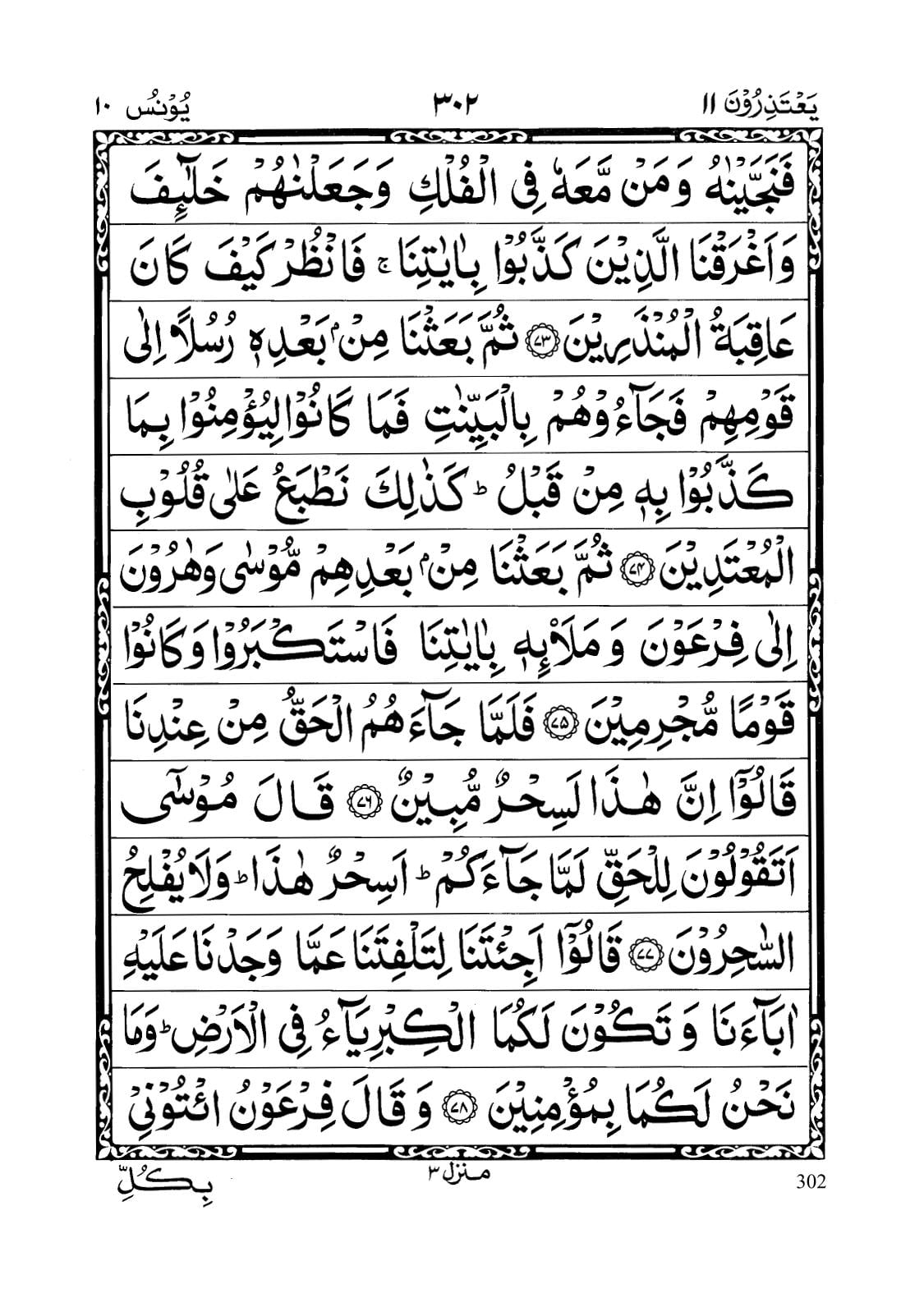 - Fa kazzaboohu fa najjainaahu wa man ma’ahoo fil fulki wa ja’alnaahum khalaaa’ifa wa aghraqnal lazeena kazzaboo bi aayaatinaa fanzur kaifa kaana ‘aaqibatul munzareen