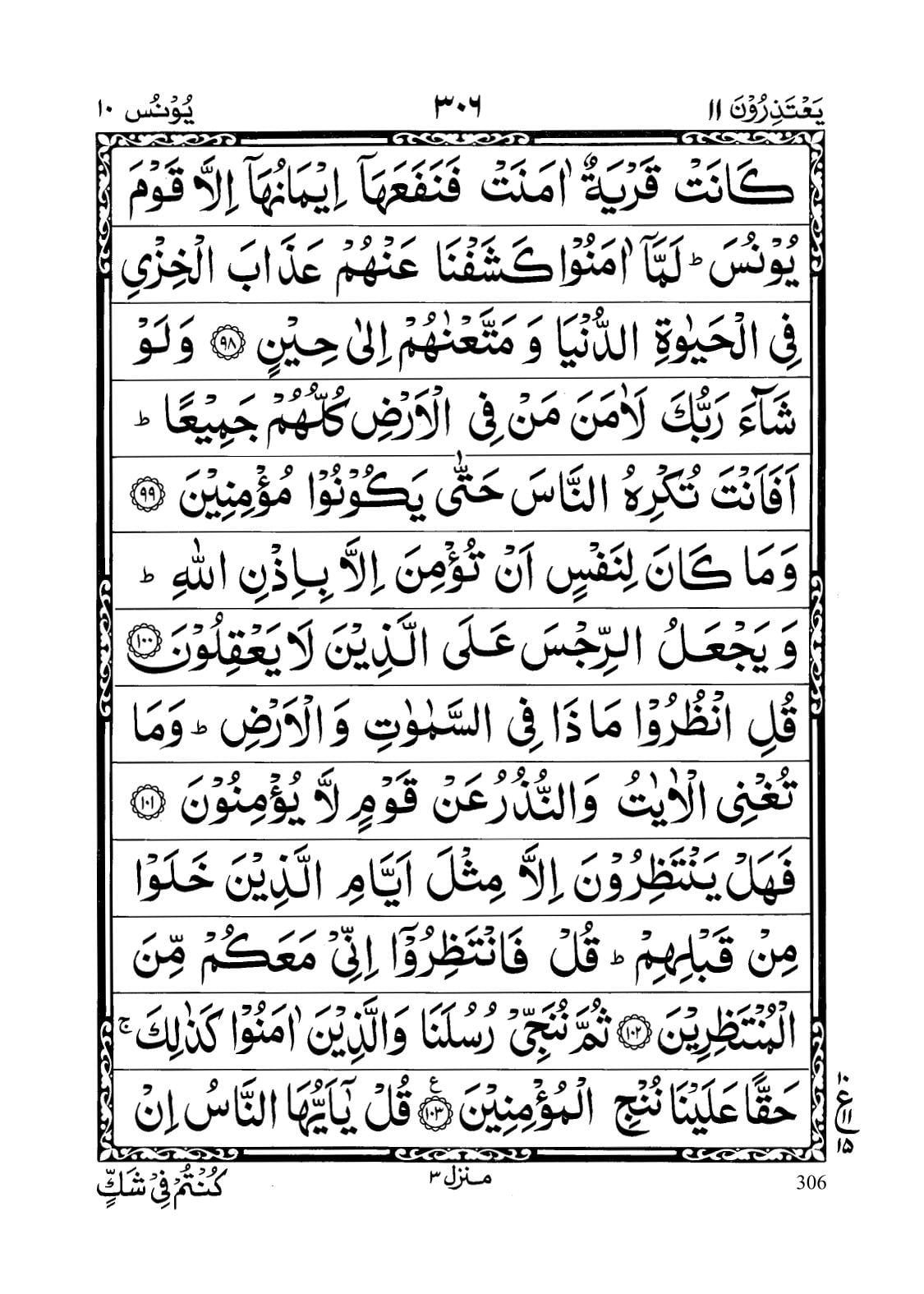 - Falaw laa kaanat qaryatun aamanat fa nafa’ahaaa eemaanuhaaa illaa qawma Yoonusa lammaaa aamanoo kashafnaa ‘anhum ‘azaabal khizyi fil hayaatid dunyaa wa matta’naahum ilaa heen