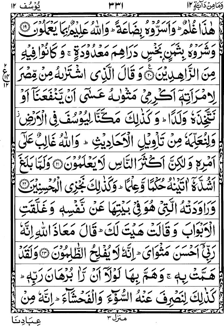 - Yoosufu a’rid ‘an haaza wastaghfiree li zanbiki innaki kunti minal khaati’een (section 3)