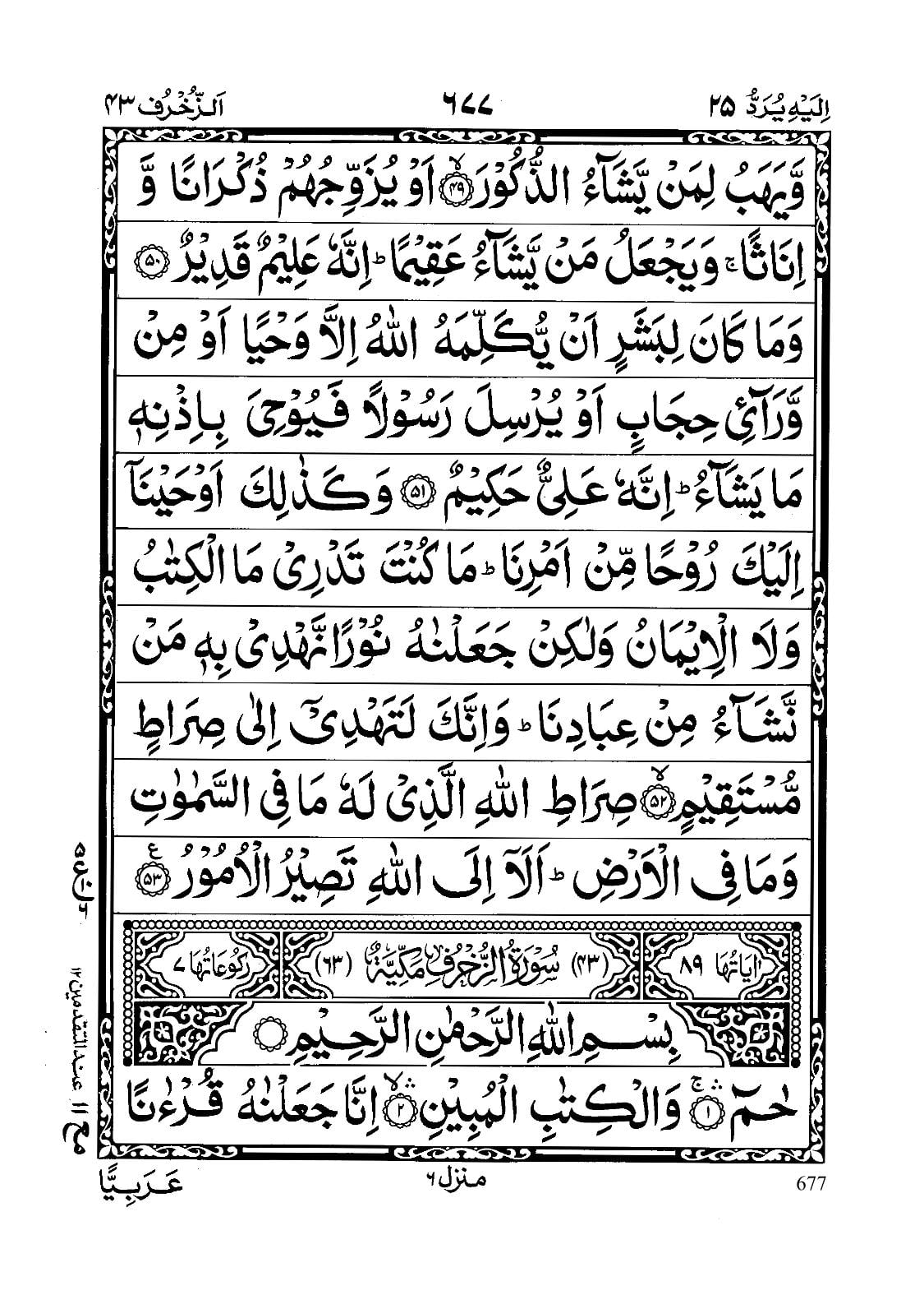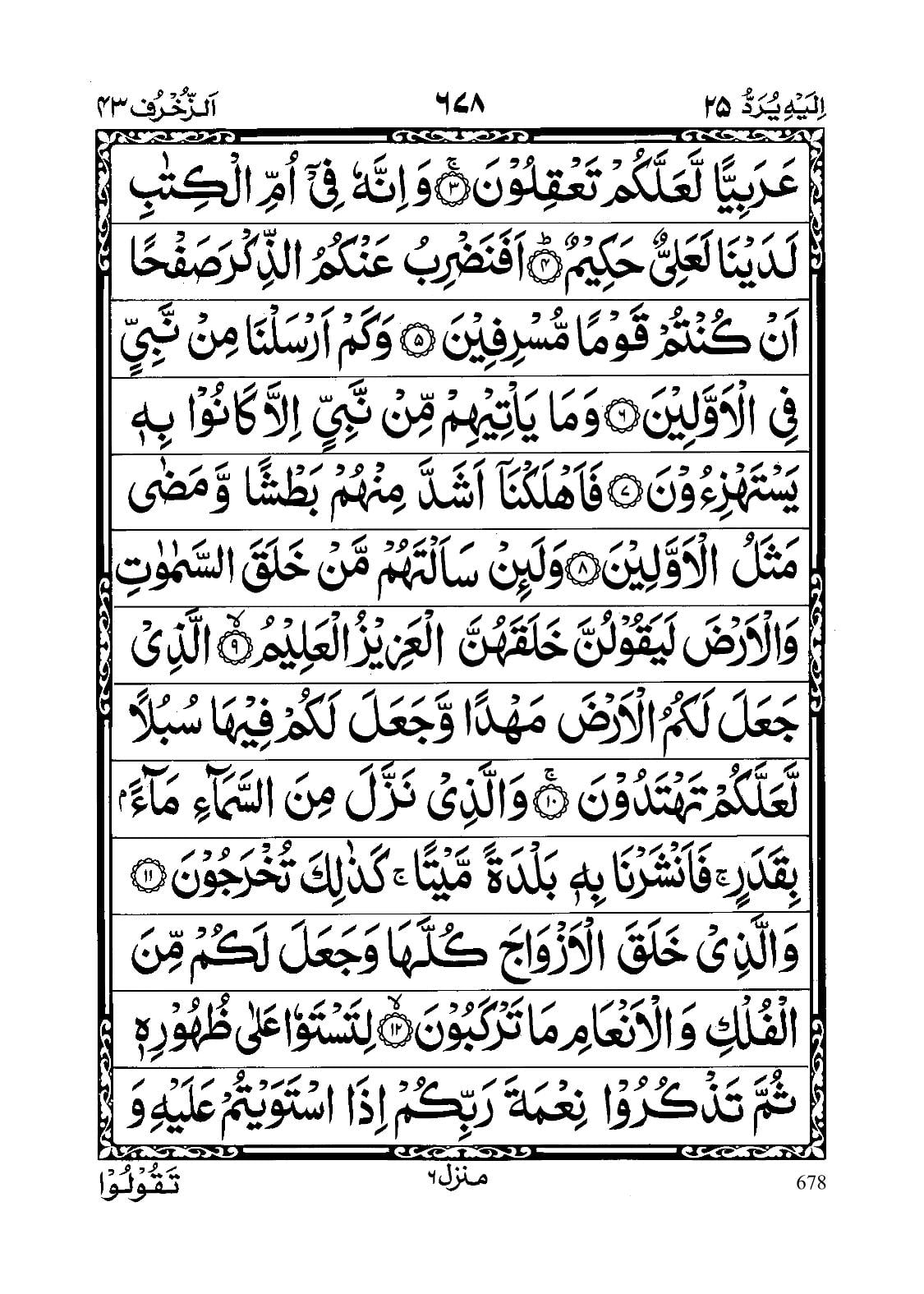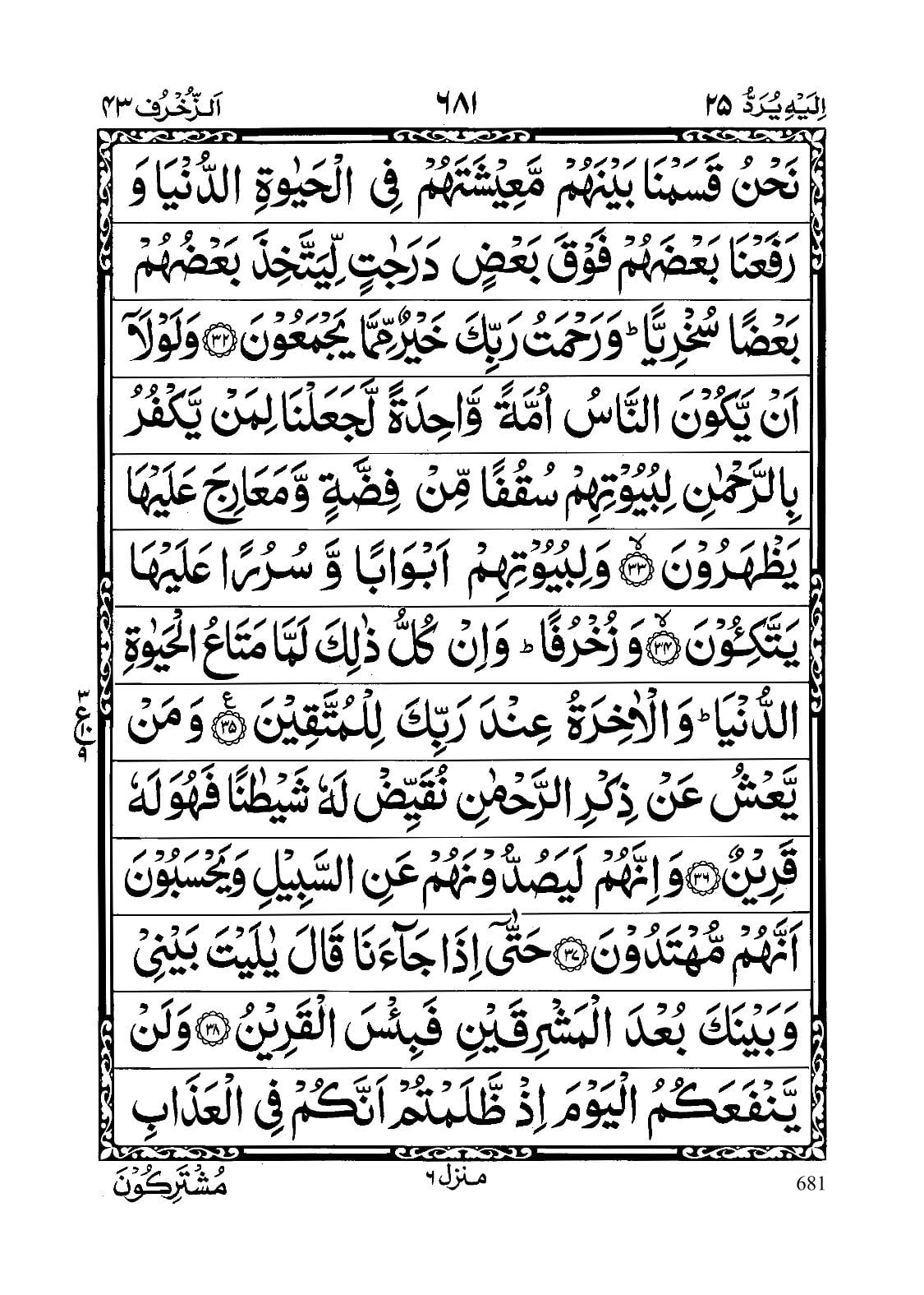 - Wa law laaa any yakoonan naasu ummatanw waahidatan laja’alnaa limany yakfuru bir Rahmaani li buyootihim suqufan min fiddatinw wa ma’aarija ‘alaihaa yazharoon